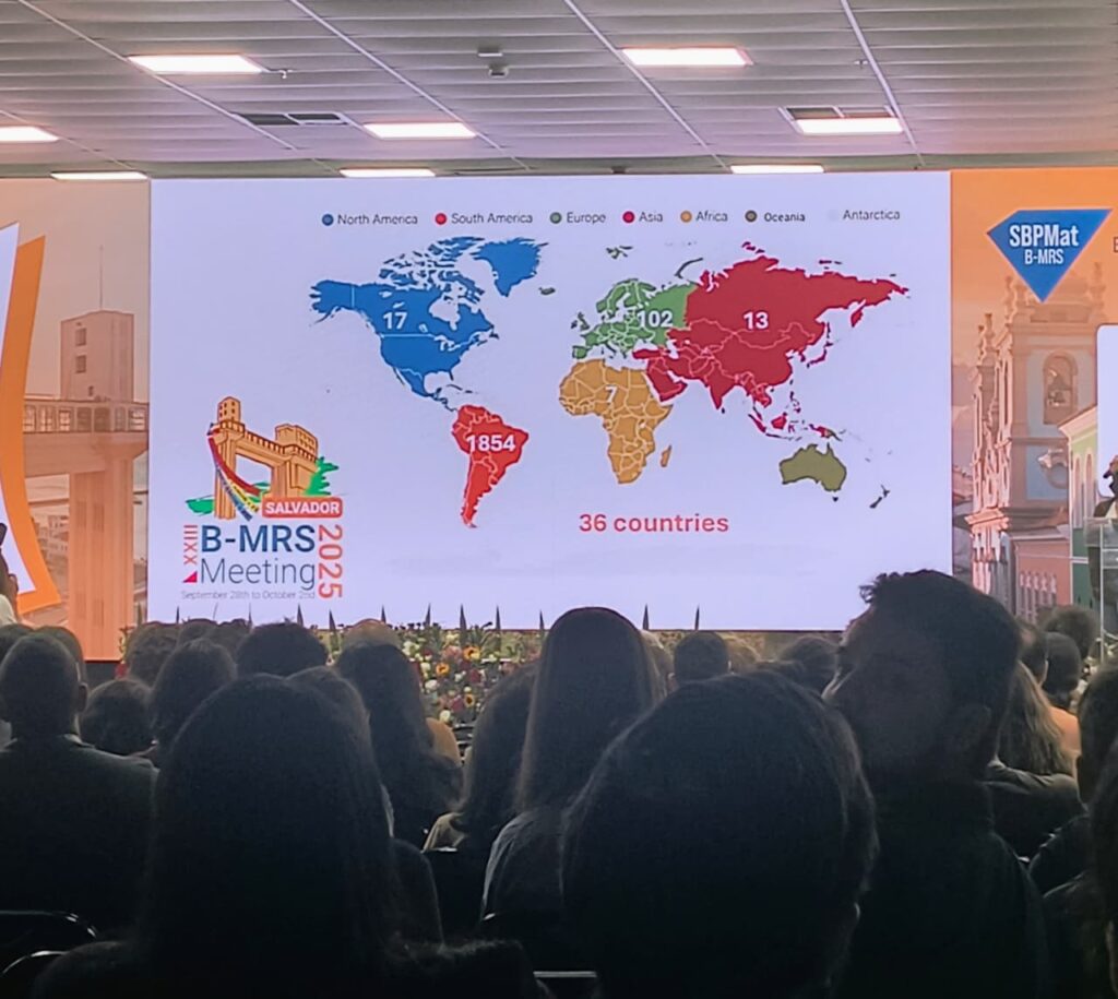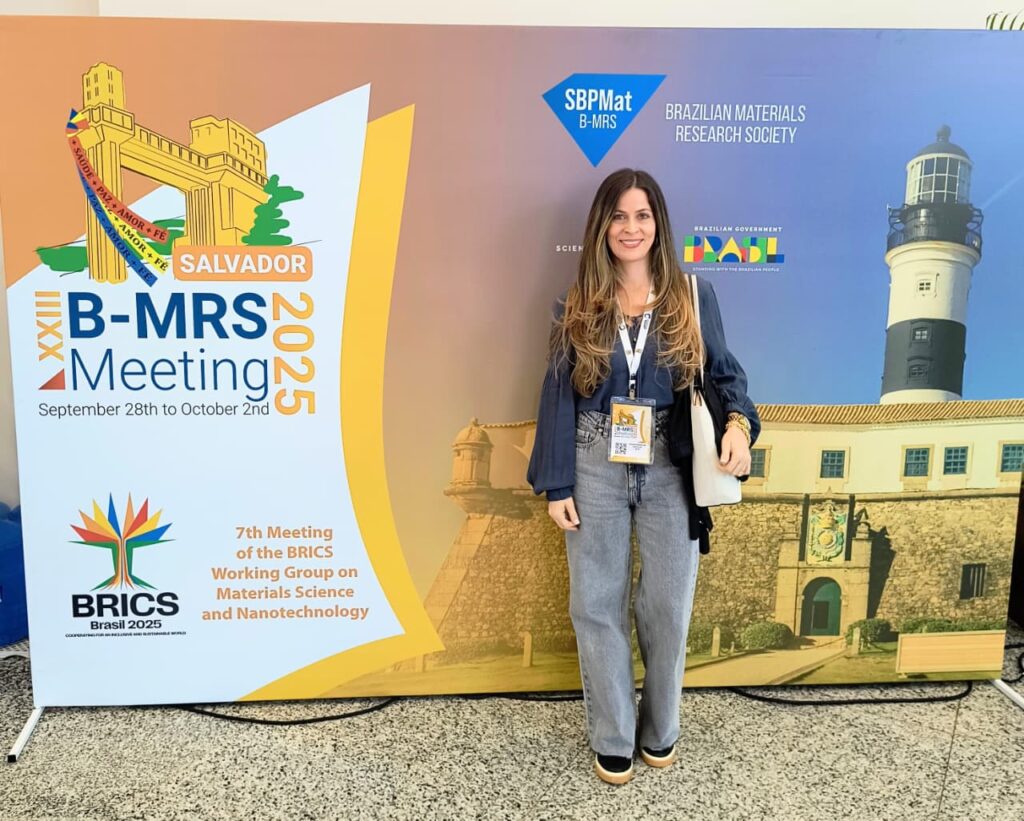 A mestranda Jéssica Ribeiro de Carvalho participou do XXIII B-MRS Meeting (SBPMat – Sociedade Brasileira de Pesquisa em Materiais), realizado entre os dias 29 de setembro a 2 de outubro de 2025, no Centro de Convenções de Salvador (BA). O evento reuniu pesquisadores, estudantes e profissionais de diversos lugares do Brasil e de vários países, configurando-se como um dos mais importantes congressos internacionais na área de Ciência dos Materiais e Tecnologias Relacionadas.