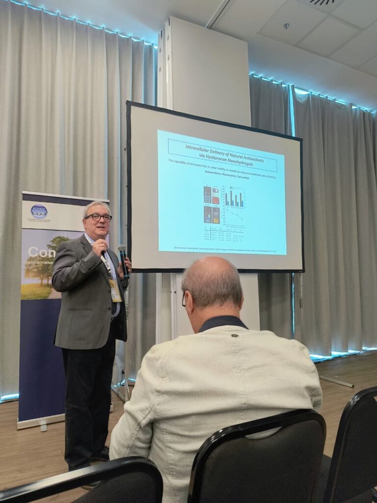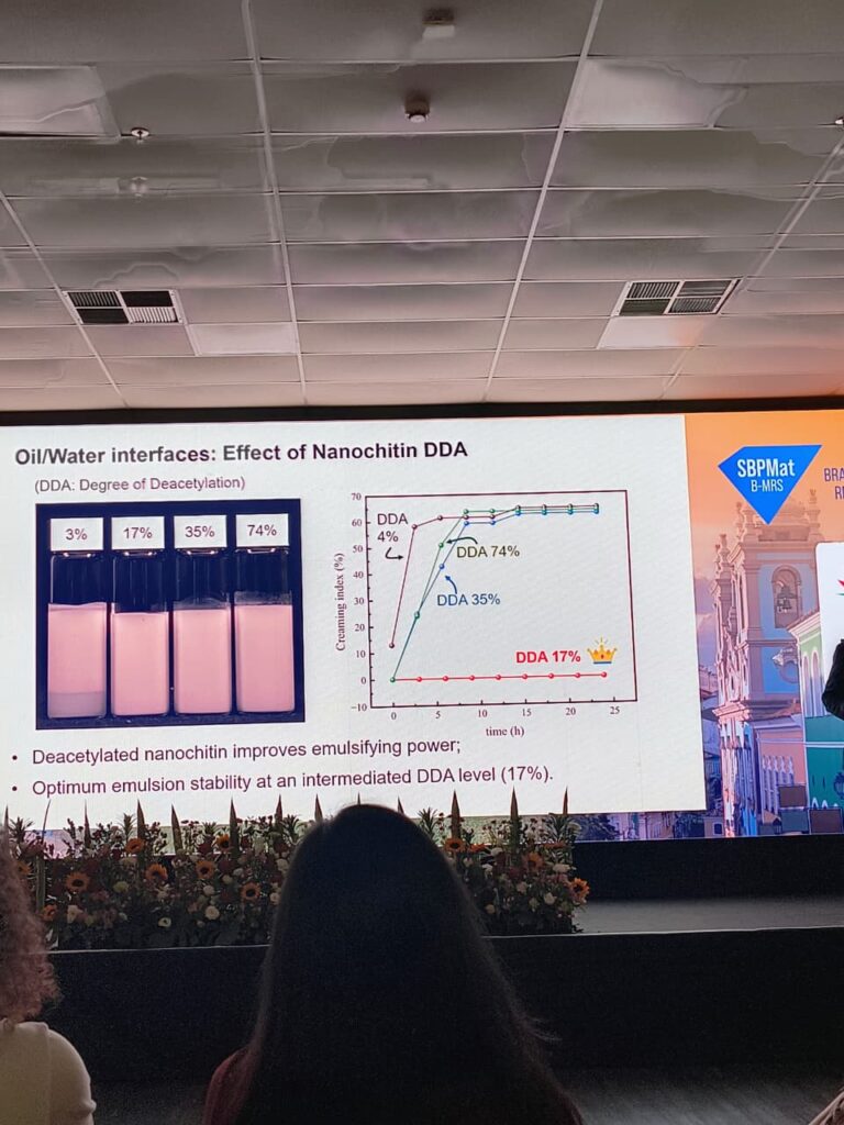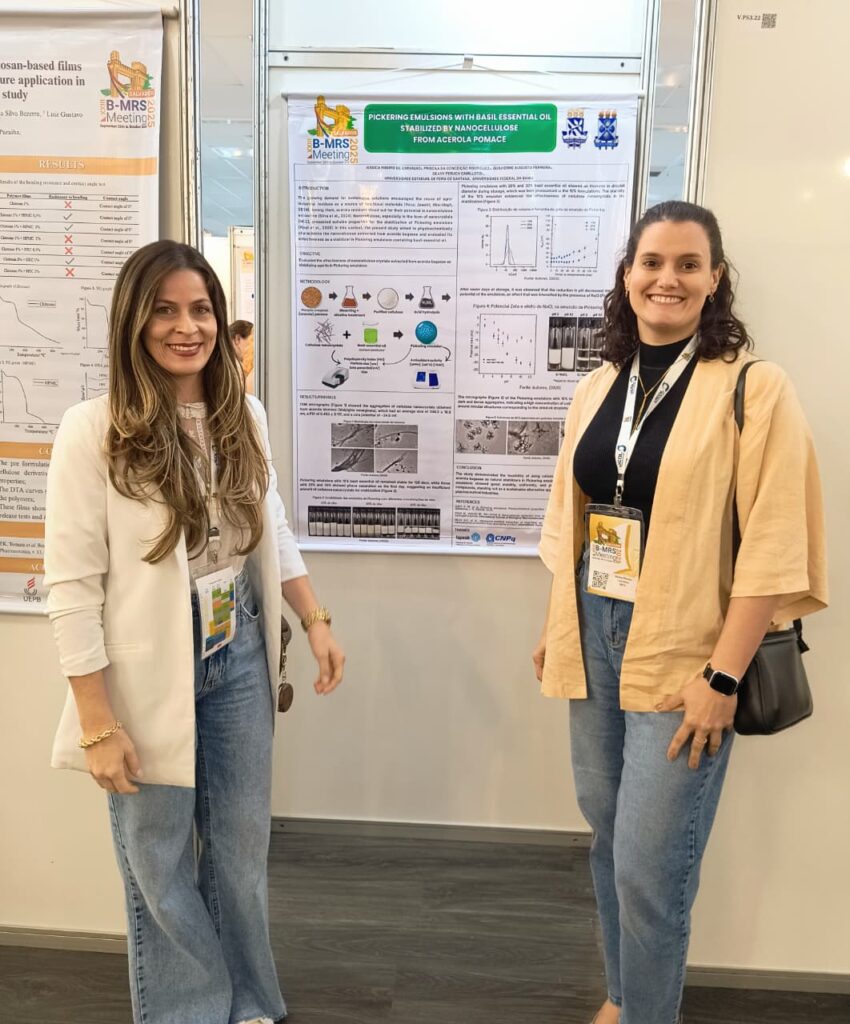 Durante o congresso, a mestranda Jéssica Ribeiro de Carvalho apresentou seu trabalho de pesquisa sobre emulsões de Pickering para aplicações em embalagens ativas, desenvolvido no âmbito do Programa de Pós-Graduação em Ciências Farmacêuticas (PPGCF) da Universidade Estadual de Feira de Santana (UEFS). A participação da aluna e de sua professora e orientadora, Dra. Geany Peruch Camilloto, foi muito importante para o desenvolvimento do trabalho, proporcionando novos aprendizados, ampliação de conhecimentos e contato com pesquisas de ponta na área.